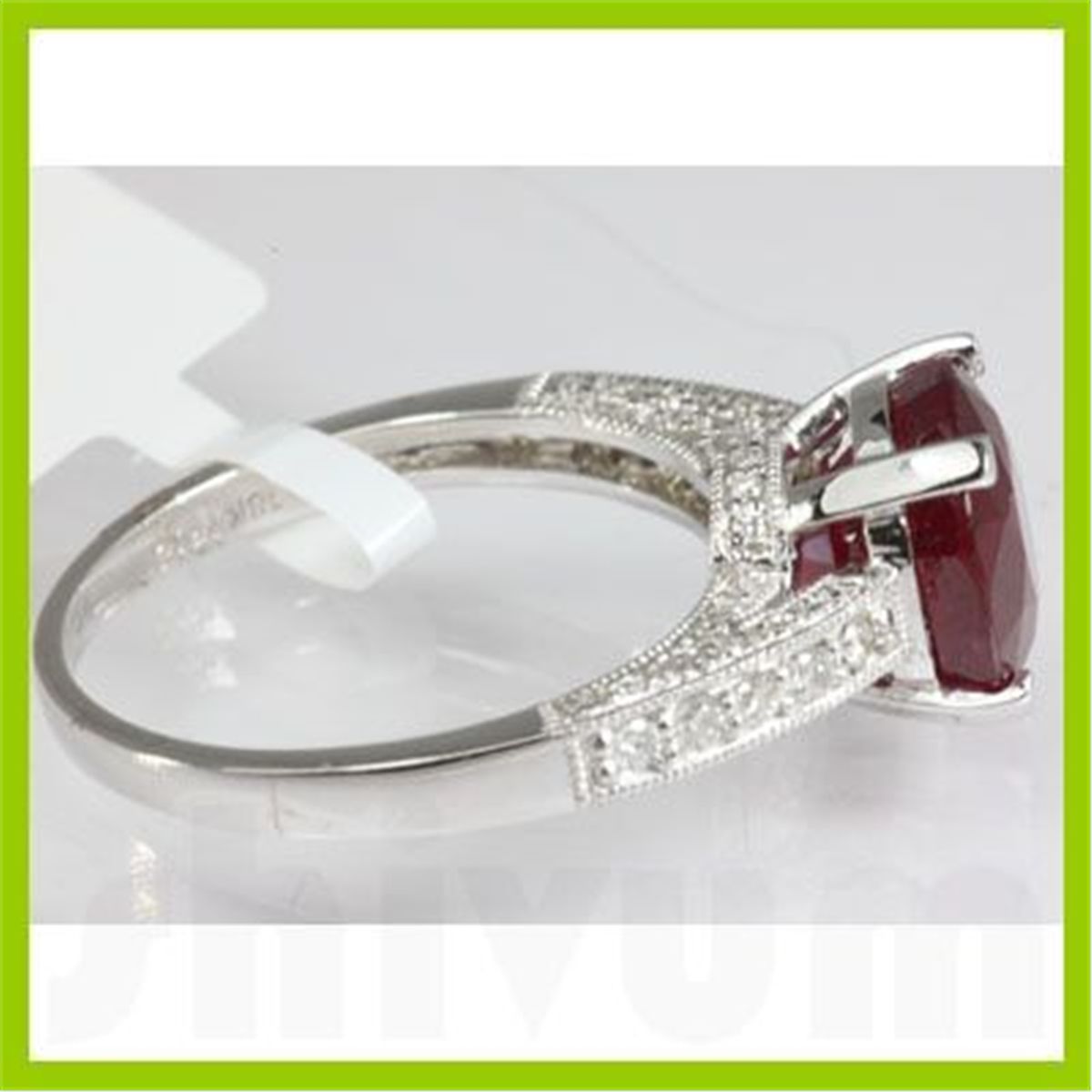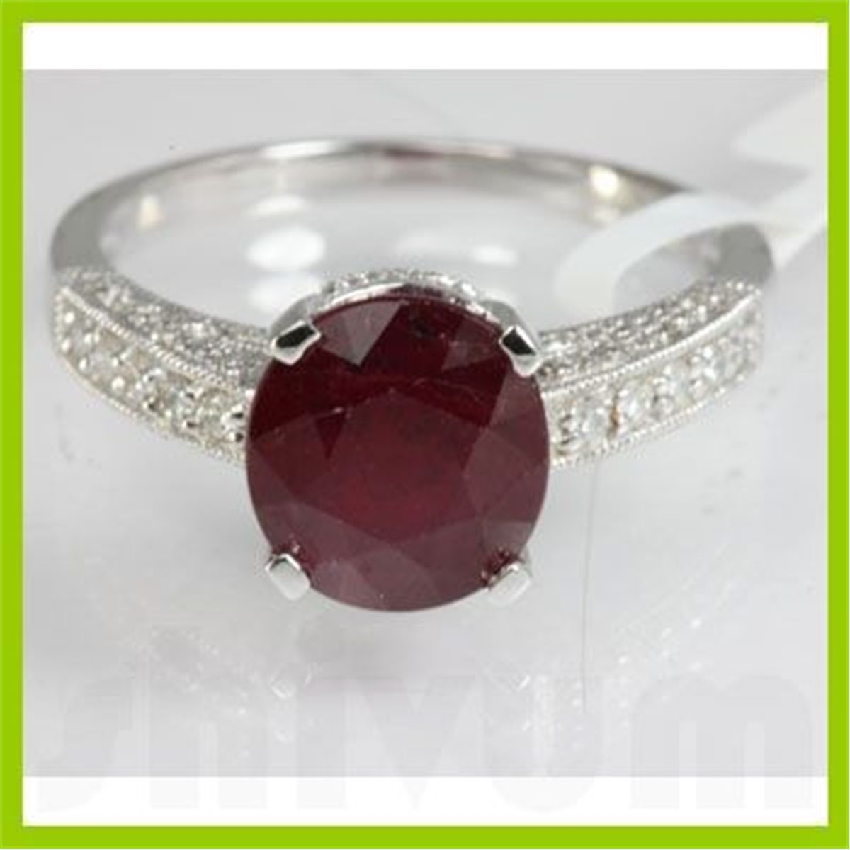 Diamond Clarity: SI1-SI2 ; Diamond Color: G-H ; Metal: 18KT ; Gold: White Gold ; Gold Weight: 4.35 ; Diamond Count: 64RD ; Diamond Weight: 0.31 ; Diamond Count 2: N/A ; Diamond Weight 2: N/A ; Gemstone Count: 1 Ruby ; Ring Size:7 ; Availability: 3-10 Business days, ready to ship, with certification of appraisal will take 2 weeks. ; MSRP: $3812
