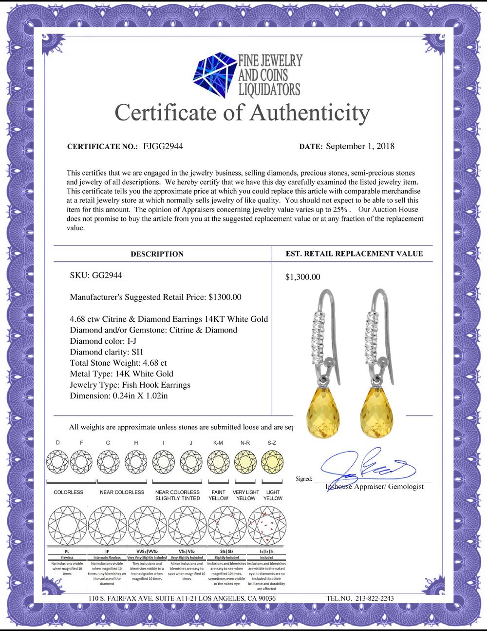 REF-40M7T - SKU: GG2944 ---- Genuine 4.68 ctw Citrine & Diamond Earrings 14KT White Gold