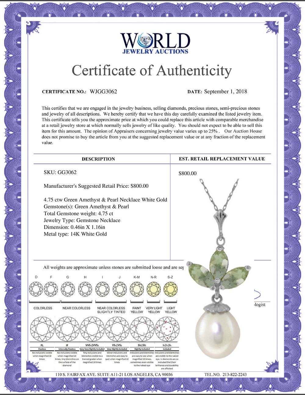 REF-24Z3N - SKU: GG3062 ---- Genuine 4.75 ctw Green Amethyst & Pearl Necklace 14KT Rose Gold