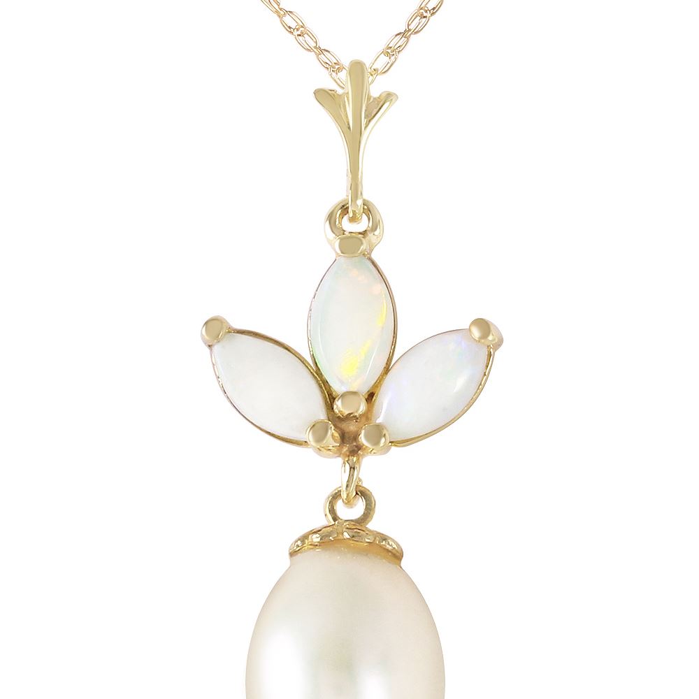 Genuine 14K Yellow Gold 4.75 ctw Opal & Pearl Necklace