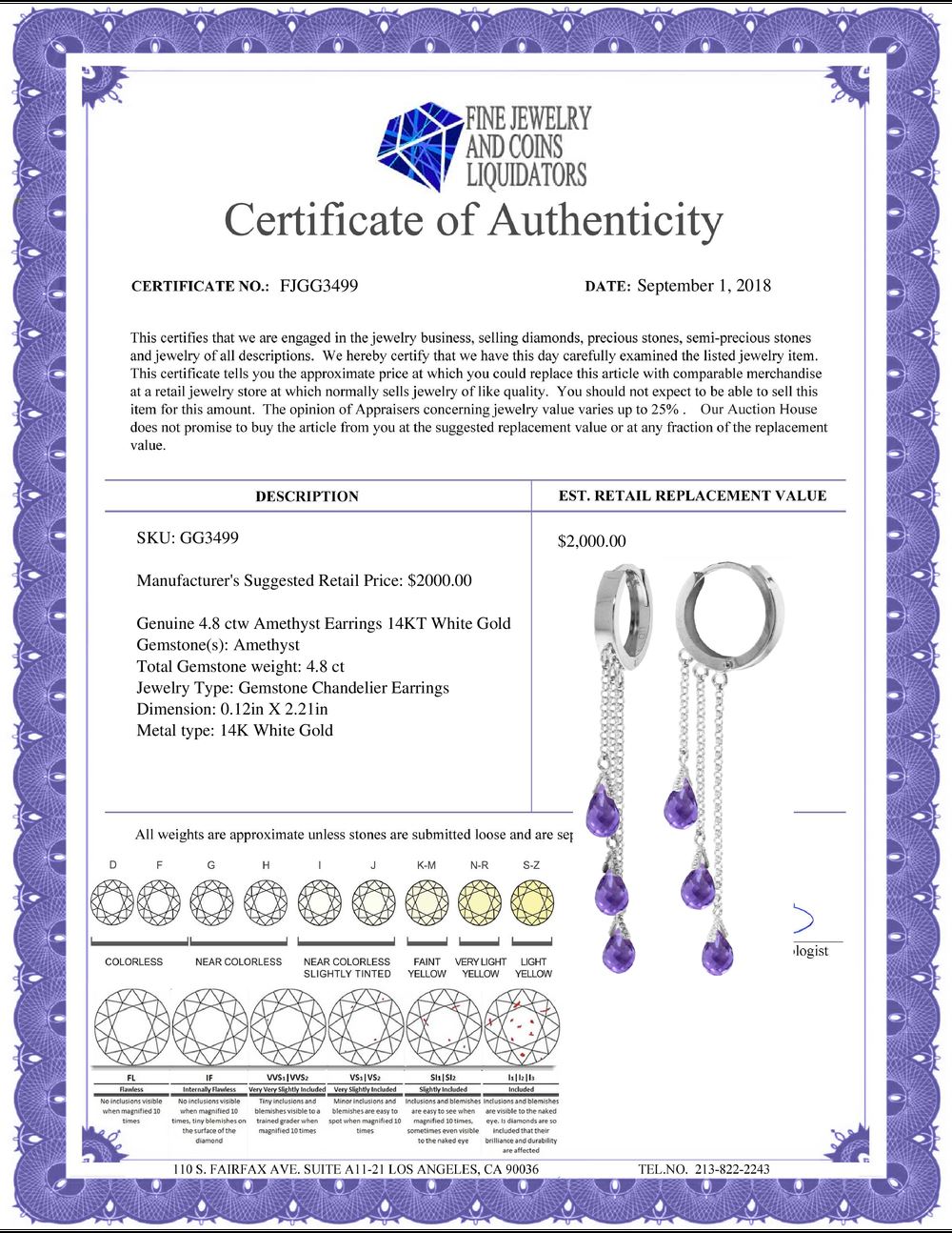 REF-64P4H - SKU: GG3499 ---- Genuine 4.8 ctw Amethyst Earrings 14KT White Gold