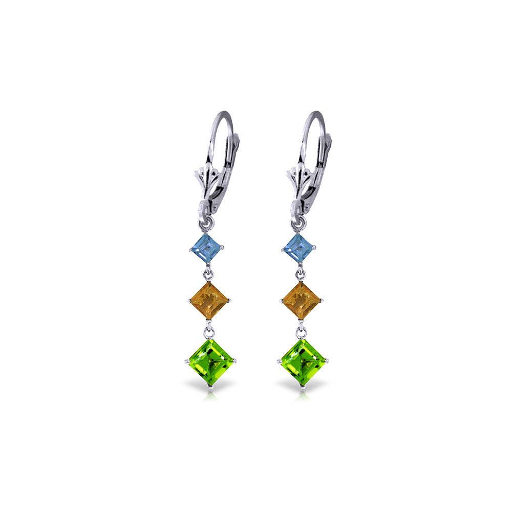 Genuine 14K White Gold 4.8 ctw Blue Topaz & Citrine Earrings