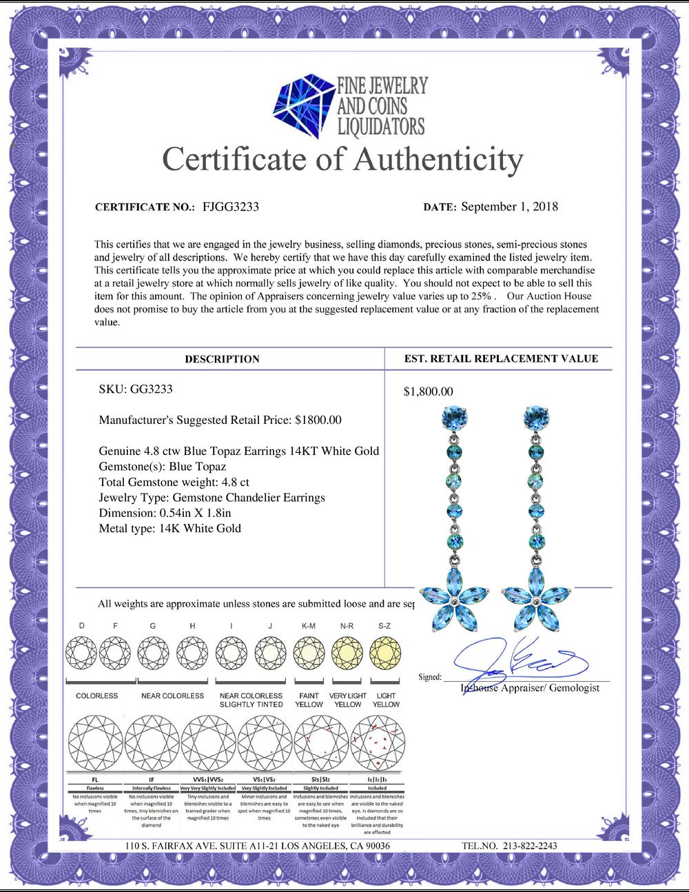REF-56Z8N - SKU: GG3233 ---- Genuine 4.8 ctw Blue Topaz Earrings 14KT Rose Gold