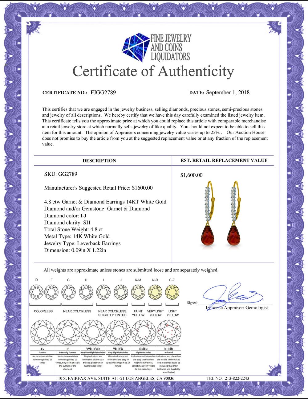 REF-53N2R - SKU: GG2789 ---- Genuine 4.8 ctw Garnet & Diamond Earrings 14KT White Gold