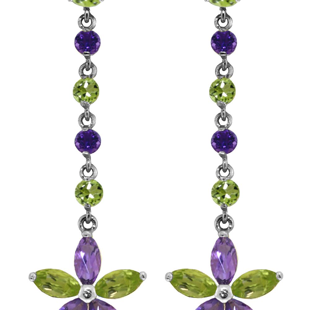 Genuine 14K White Gold 4.8 ctw Peridot & Amethyst Earrings