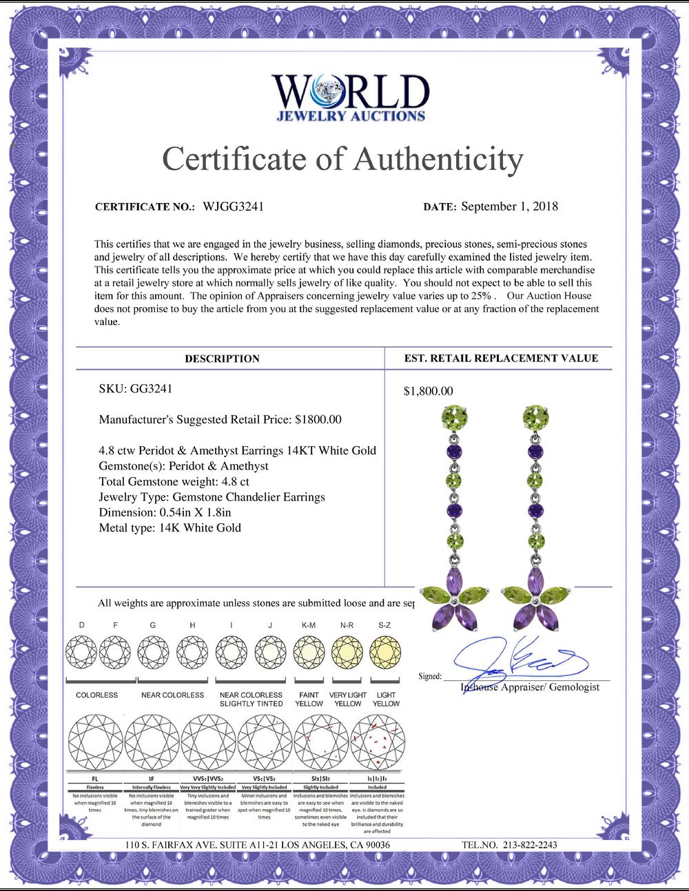 REF-56F8Z - SKU: GG3241 ---- Genuine 4.8 ctw Peridot & Amethyst Earrings 14KT White Gold