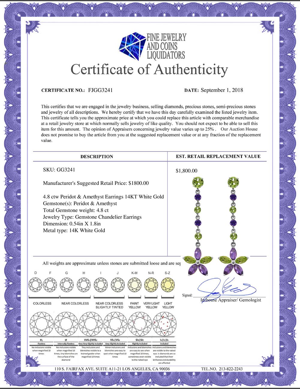 REF-56F8Z - SKU: GG3241 ---- Genuine 4.8 ctw Peridot & Amethyst Earrings 14KT White Gold