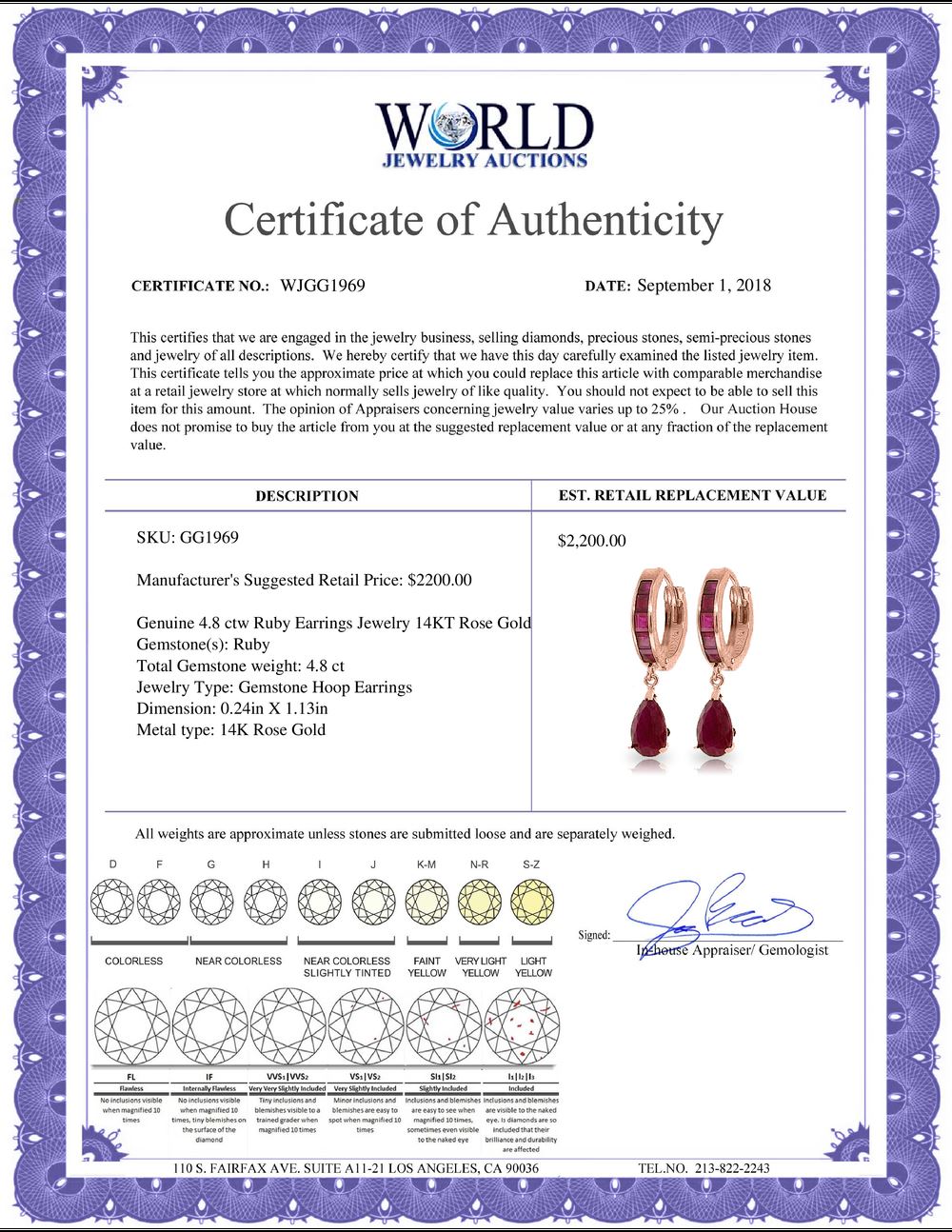REF-71T5A - SKU: GG1969 ---- Genuine 4.8 ctw Ruby Earrings 14KT Rose Gold