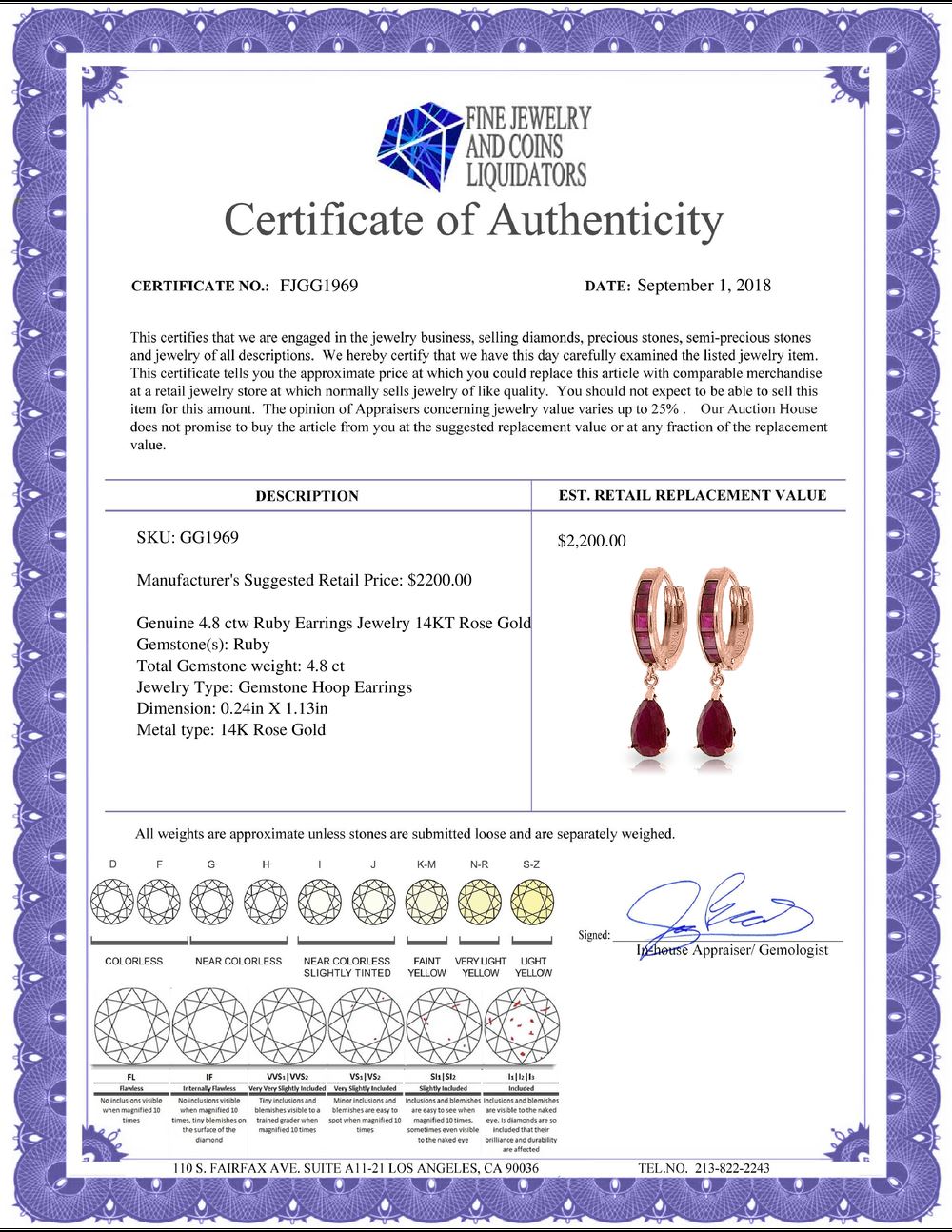 REF-71T5A - SKU: GG1969 ---- Genuine 4.8 ctw Ruby Earrings 14KT Rose Gold
