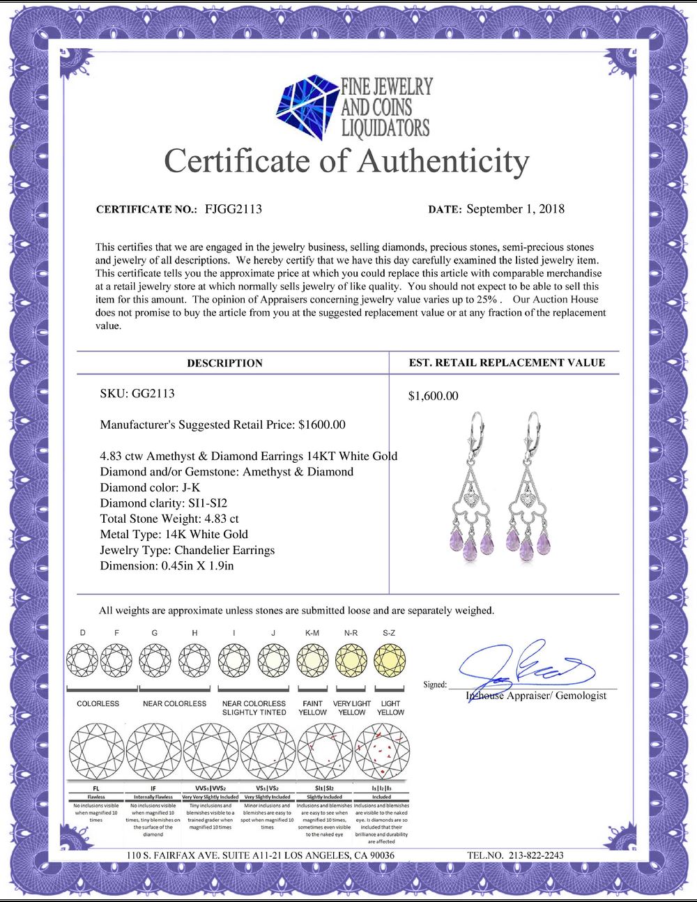 REF-52Y7F - SKU: GG2113 ---- Genuine 4.83 ctw Amethyst & Diamond Earrings 14KT Rose Gold