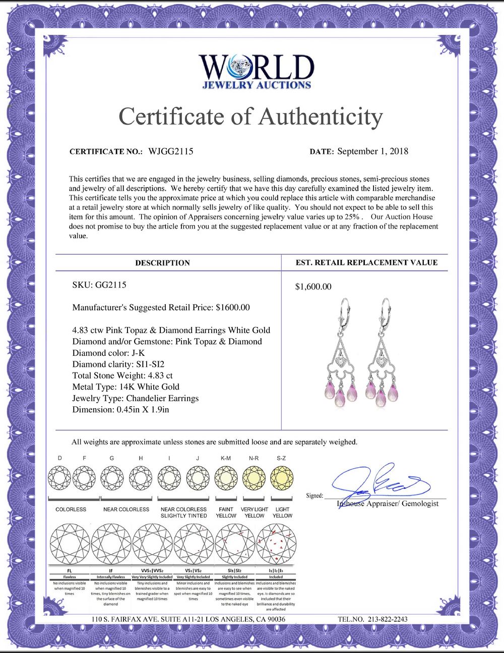 REF-52P7H - SKU: GG2115 ---- Genuine 4.83 ctw Pink Topaz & Diamond Earrings 14KT Rose Gold
