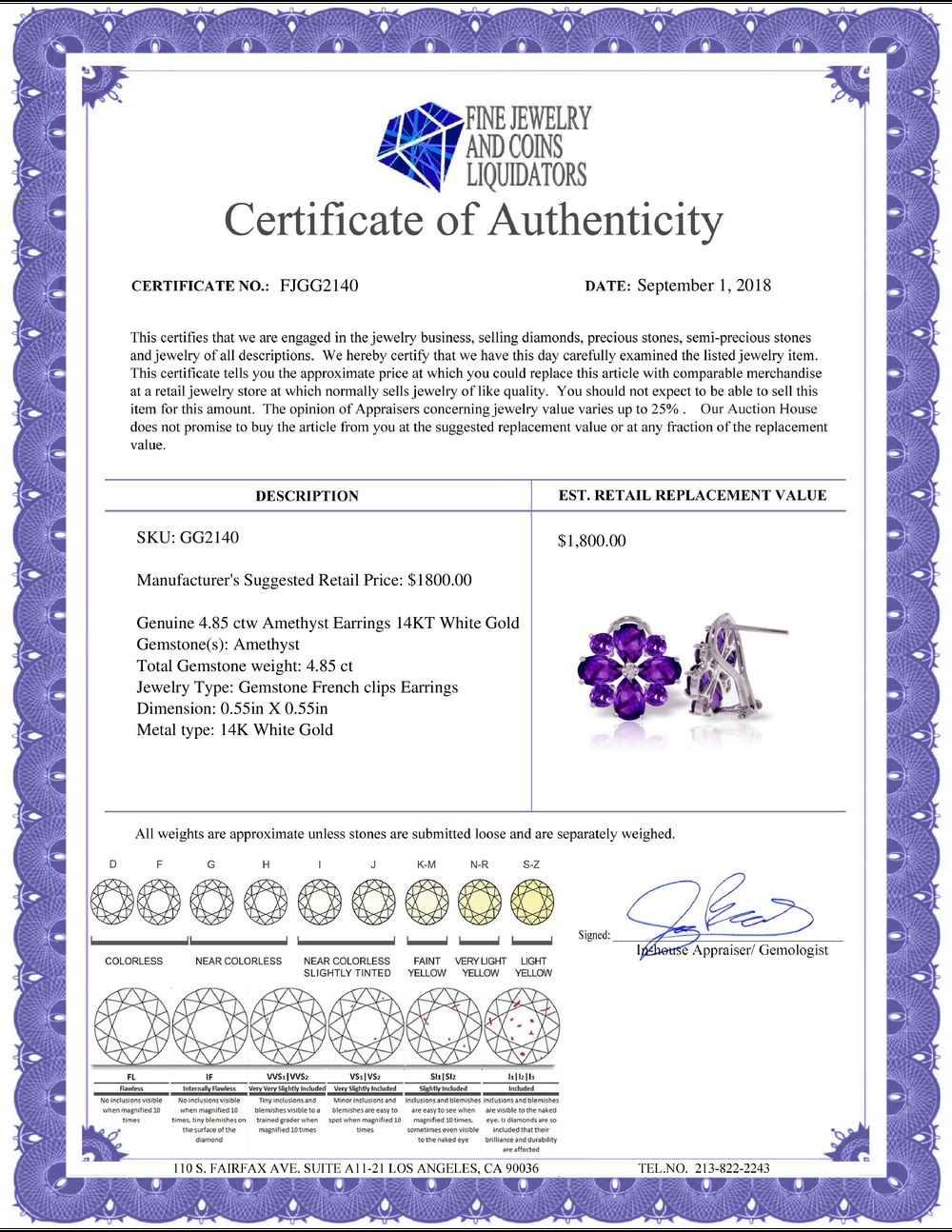 REF-58Z4N - SKU: GG2140 ---- Genuine 4.85 ctw Amethyst Earrings 14KT White Gold