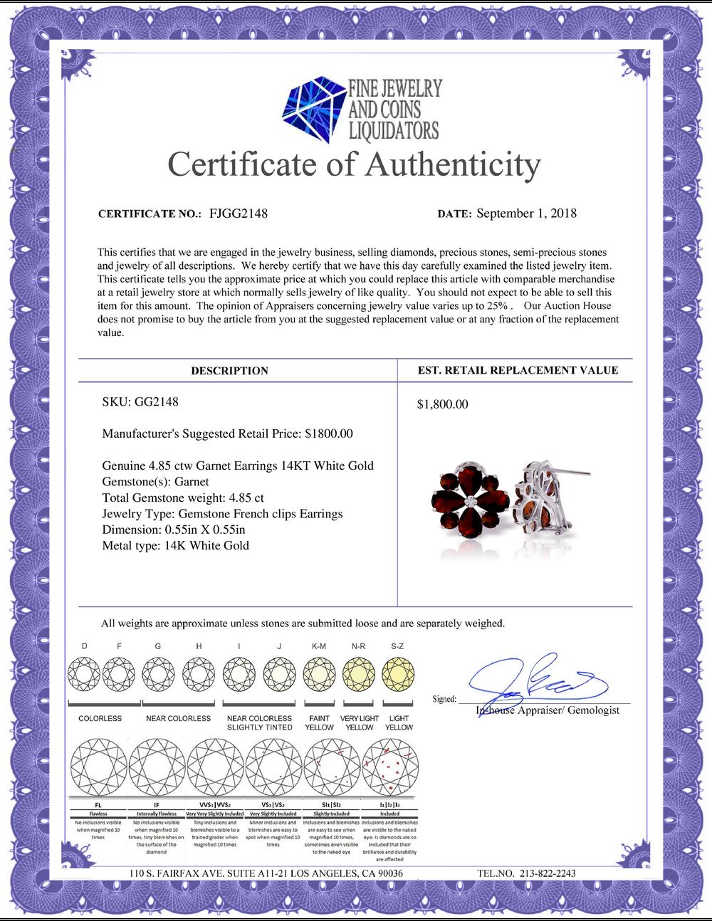 All Gia and EGL Diamonds are subject to availability due to consignors’ terms with us.