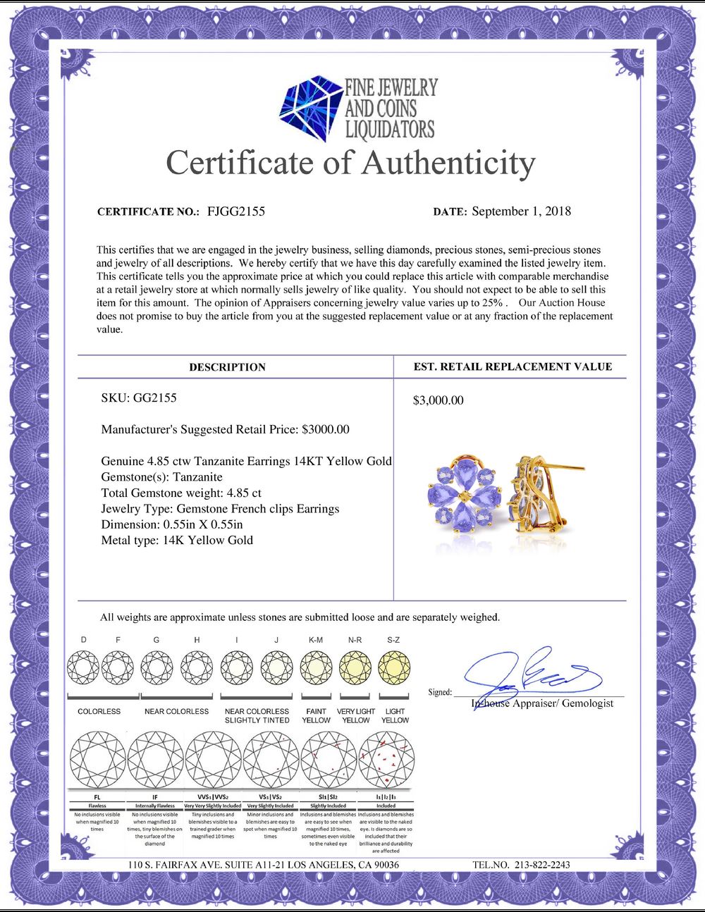 Genuine 14K Yellow Gold 4.85 ctw Tanzanite Earrings