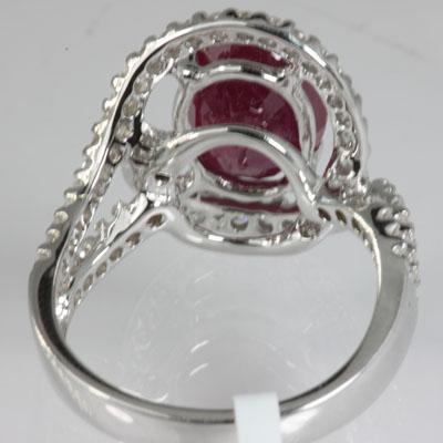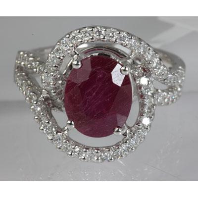 Diamond Clarity: SI1-SI2; ; Diamond Color: G-H ; Metal: 18KT ; Gold: White Gold ; Gold Weight: 6.77 ; Diamond Count: 62RD ; Diamond Weight: 0.815 ; Diamond Count 2: N/A ; Diamond Weight 2: 0.003 ; Gemstone Count: 1 Ruby ; Ring Size:7