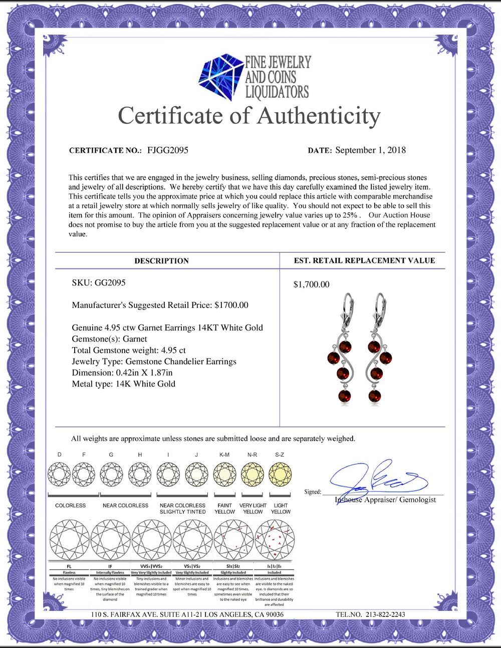 REF-53N8R - SKU: GG2095 ---- Genuine 4.95 ctw Garnet Earrings 14KT Rose Gold