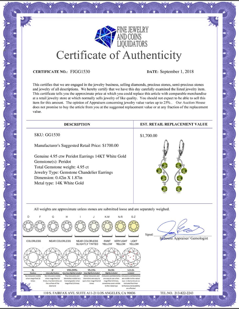 REF-53N8R - SKU: GG1530 ---- Genuine 4.95 ctw Peridot Earrings 14KT Rose Gold