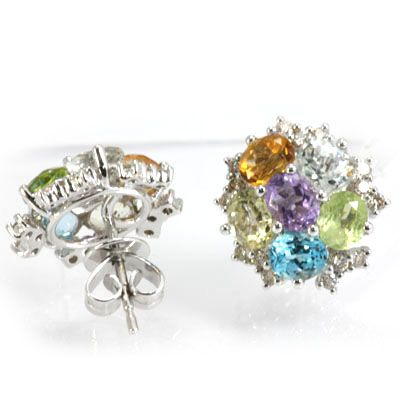 Genuine 4.98 ctw Multi Sapphire & Diamond Earring 14kt **|**|** Diamond Clarity: SI1-SI2 ; Diamond Color: G-H ; Metal: 14KT ; Gold: White Gold ; Gold Weight: 3.63 ; Diamond Count: 30RD ; Diamond Weight: 0.41 ; Diamond Count 2: N/A ; Diamond Weight 2: N/A ; Gemstone Count: 12 Sapphire ; Availability: 3-10 Business days, ready to ship, with certification of appraisal will take 2 weeks. ; MSRP: $1466