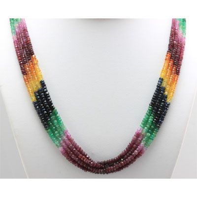 Genuine 4 Strand Multi Precious Roundel 163.75 ctw **|**|** Total CTW: 163.75; Dia/Gem Count: Emerald,Ruby,Blue sapphire and Yellow sapphire ; Dia / Gem Shape :Faceted round ; Cut / Color: Excellent smooth, polished cut. Fantastic Natural colour. ; MSRP: $1500
