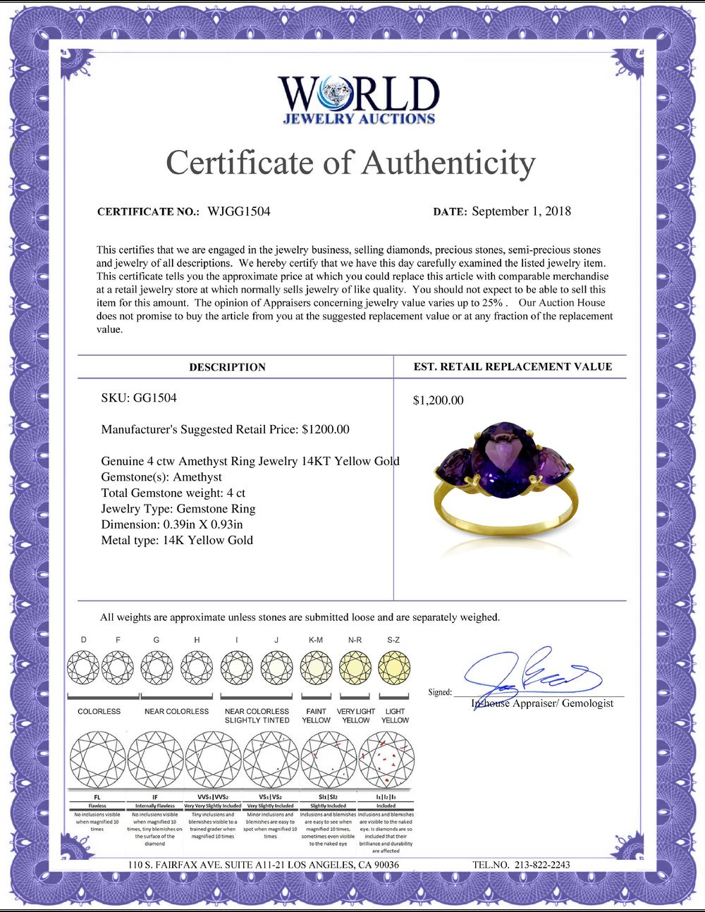 REF-38T5A - SKU: GG1504 ---- Genuine 4 ctw Amethyst Ring 14KT Yellow Gold