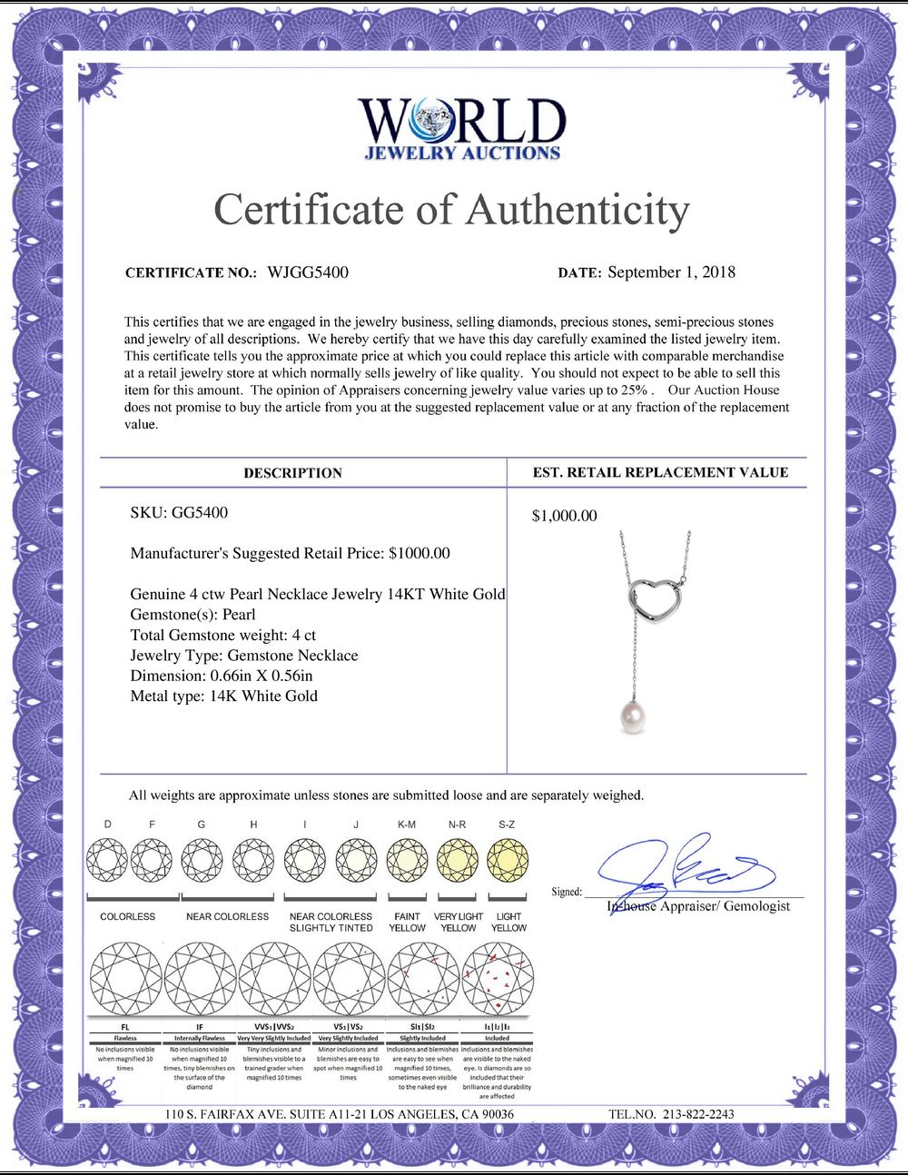 REF-31Z4N - SKU: GG5400 ---- Genuine 4 ctw Pearl Necklace 14KT Rose Gold