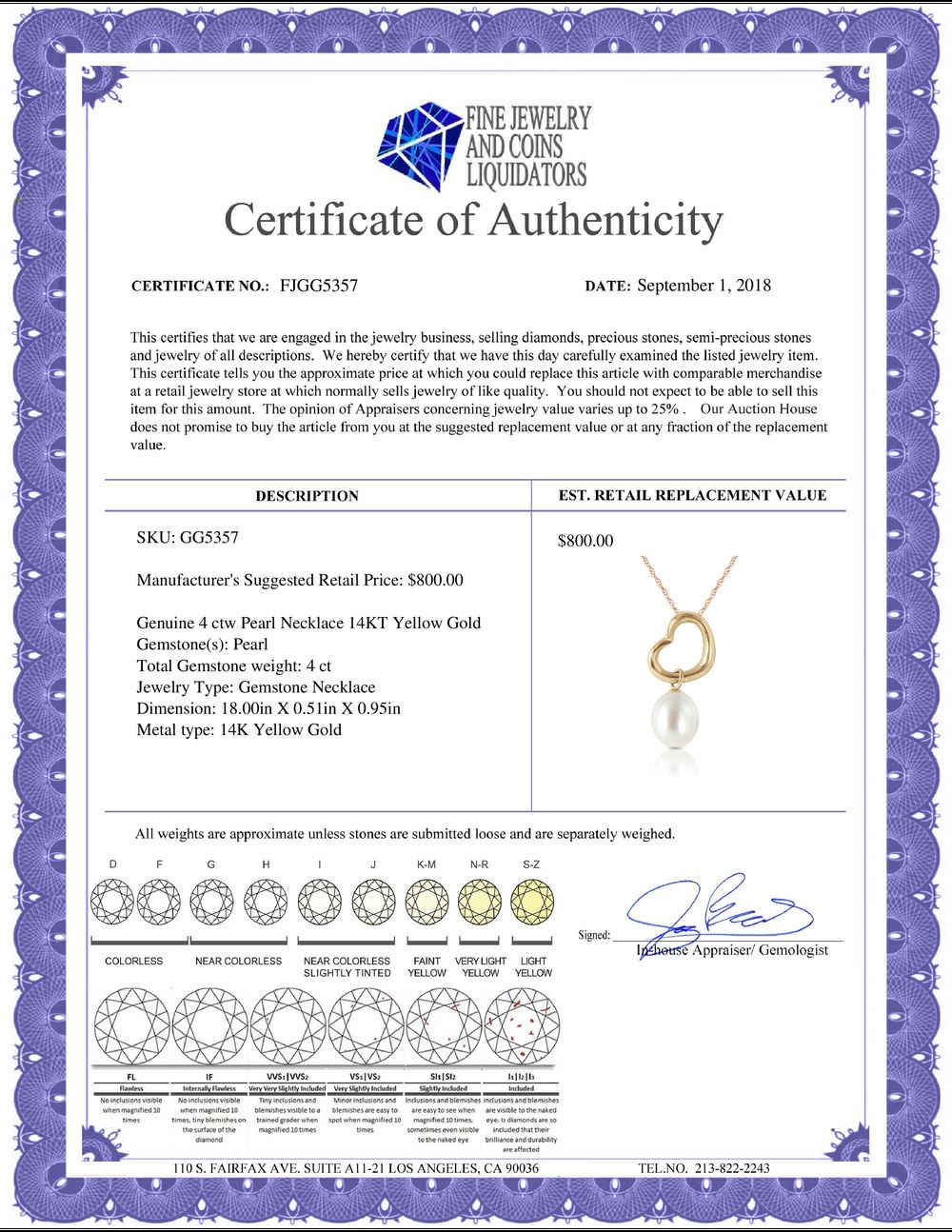 Genuine 14K Yellow Gold 4 ctw Pearl Necklace