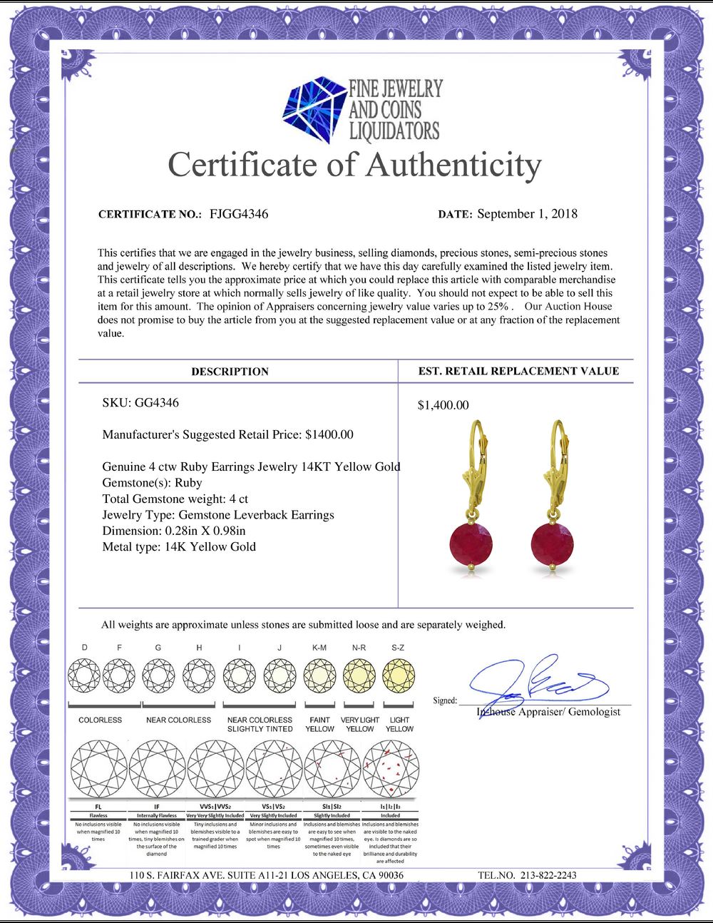 REF-45F8Z - SKU: GG4346 ---- Genuine 4 ctw Ruby Earrings 14KT Yellow Gold