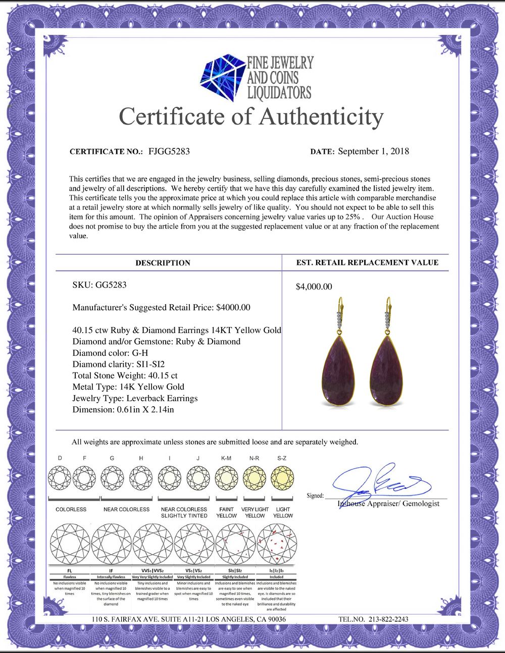 REF-130Z3N - SKU: GG5283 ---- Genuine 40.15 ctw Ruby & Diamond Earrings 14KT Yellow Gold
