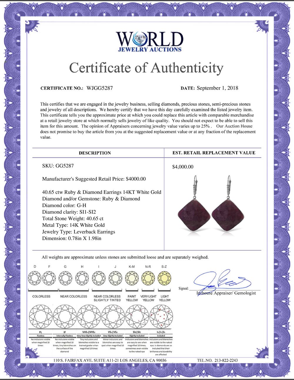 REF-131F8Z - SKU: GG5287 ---- Genuine 40.65 ctw Ruby & Diamond Earrings 14KT White Gold