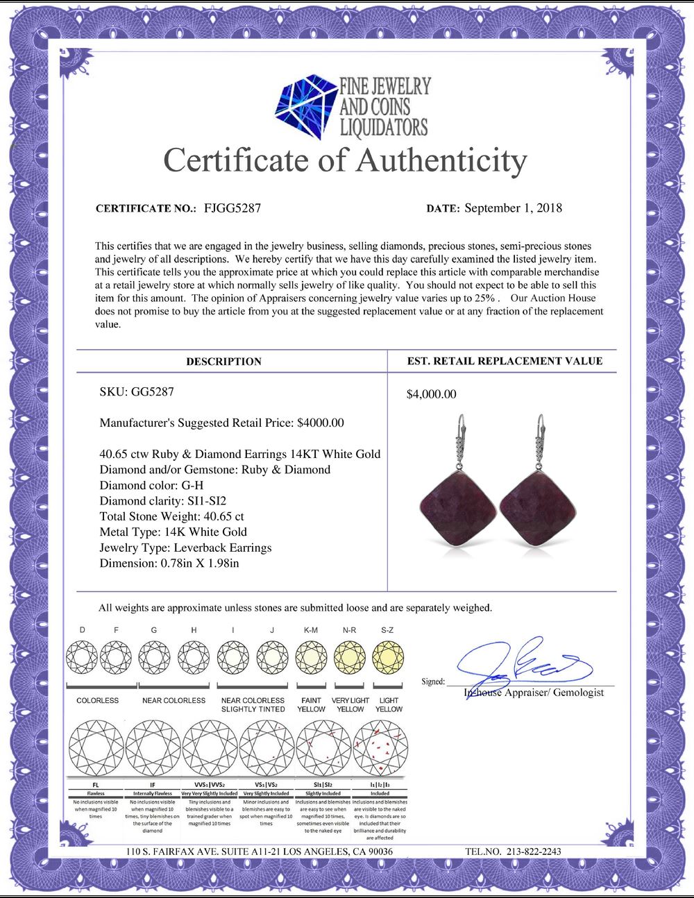 REF-131F8Z - SKU: GG5287 ---- Genuine 40.65 ctw Ruby & Diamond Earrings 14KT White Gold
