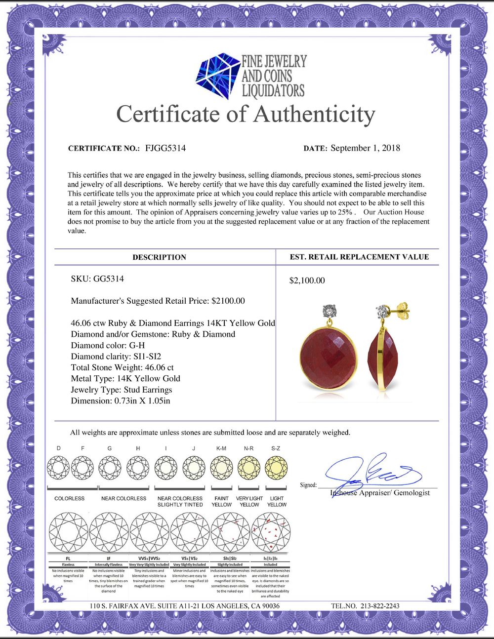 REF-68R8P - SKU: GG5314 ---- Genuine 46.06 ctw Ruby & Diamond Earrings 14KT Yellow Gold
