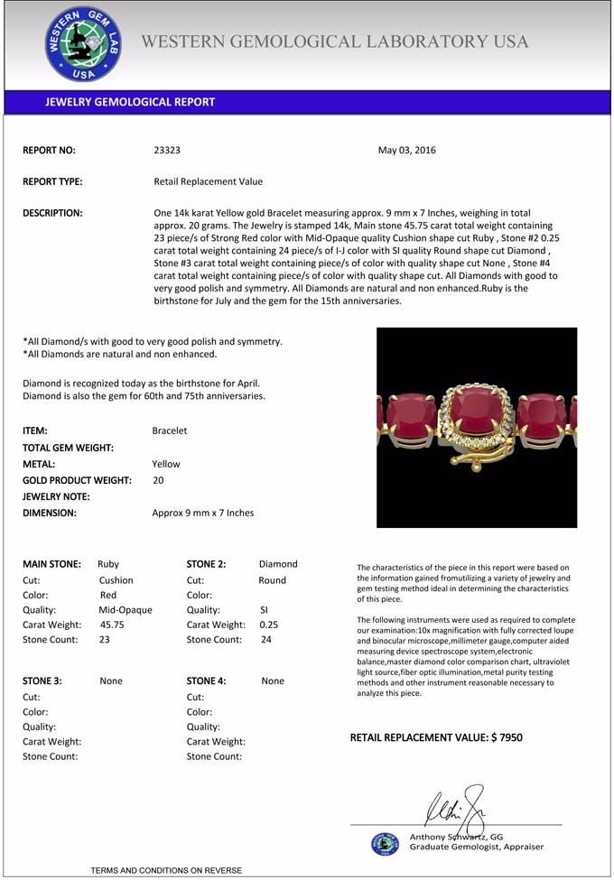 total approx. 20 grams. The Jewelry is stamped 14k, Main stone 45.75 carat total weight containing 23 piece/s of Strong Red color with