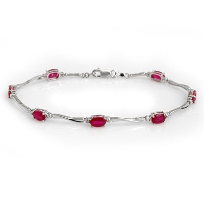 Genuine 5.02 ctw Ruby & Diamond Bracelet White Gold - Retails for $1210 ---- Diamond: 2 Round cut @ 0.02 ctw---- Clarity: SI-I---- Color: H-K----Gemstone: Natural Ruby----Gemstone color: Red----Gemstone quality: Good-to-Very Good----Gemstone Cut & Weight: 7 Oval cut @ 5.0 ctw----Metal Purity & Color : 10K Gold-White----Gold weight: 4.0 grams----Dimension: Approx. 7 x 1/8----Shipping: Within 15 business days