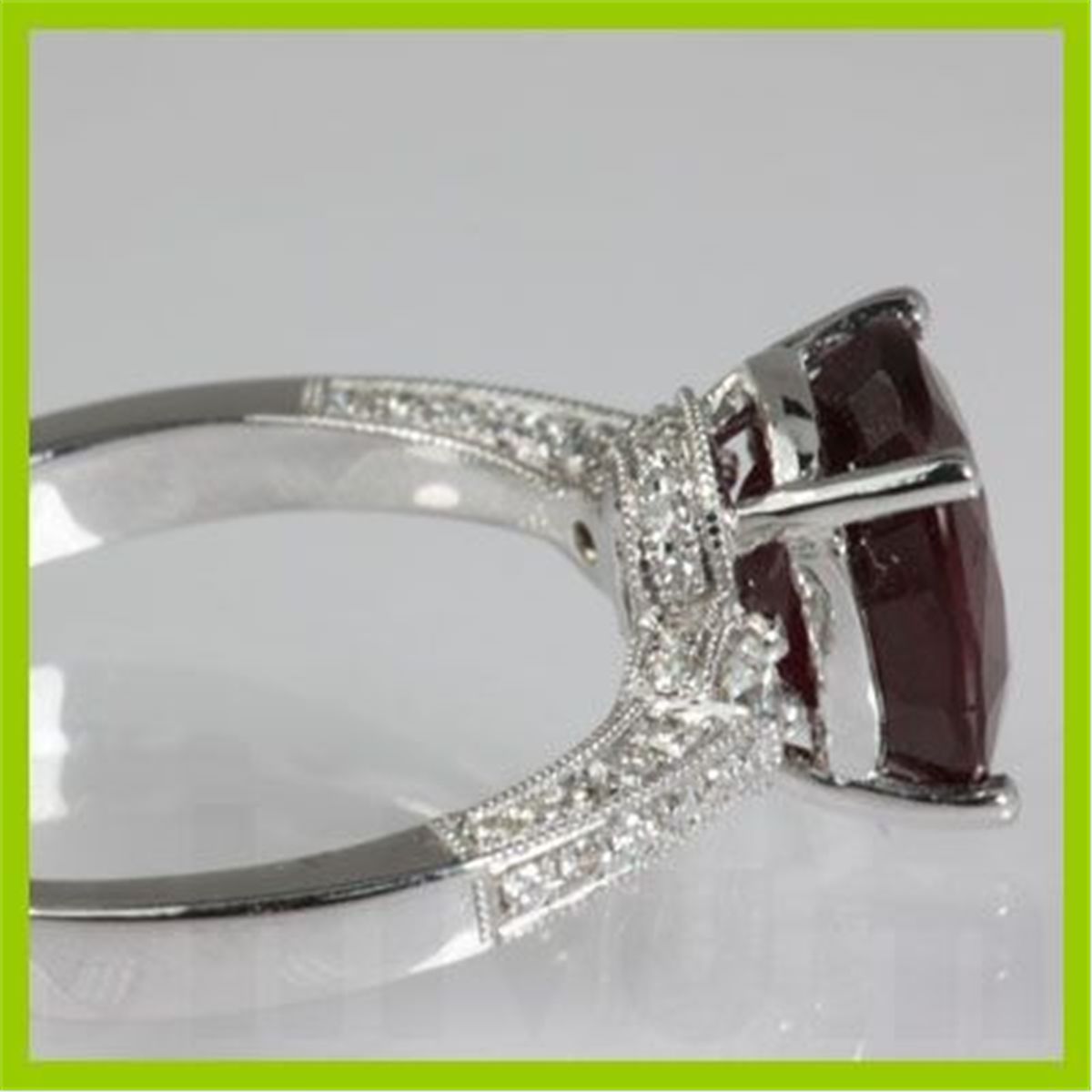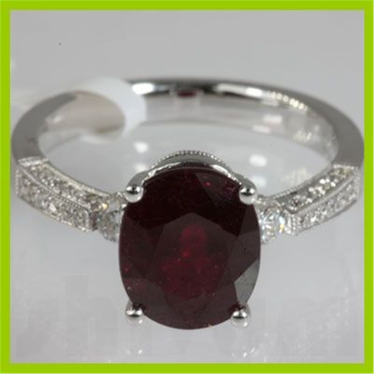 Diamond Clarity: SI1-SI2 ; Diamond Color: G-H ; Metal: 18KT ; Gold: White Gold ; Gold Weight: 5.15 ; Diamond Count: 54RD ; Diamond Weight: 0.41 ; Diamond Count 2: N/A ; Diamond Weight 2: 0.41 ; Gemstone Count: 1 Ruby ; Ring Size:7 ; Availability: 3-10 Business days, ready to ship, with certification of appraisal will take 2 weeks. ; MSRP: $3959