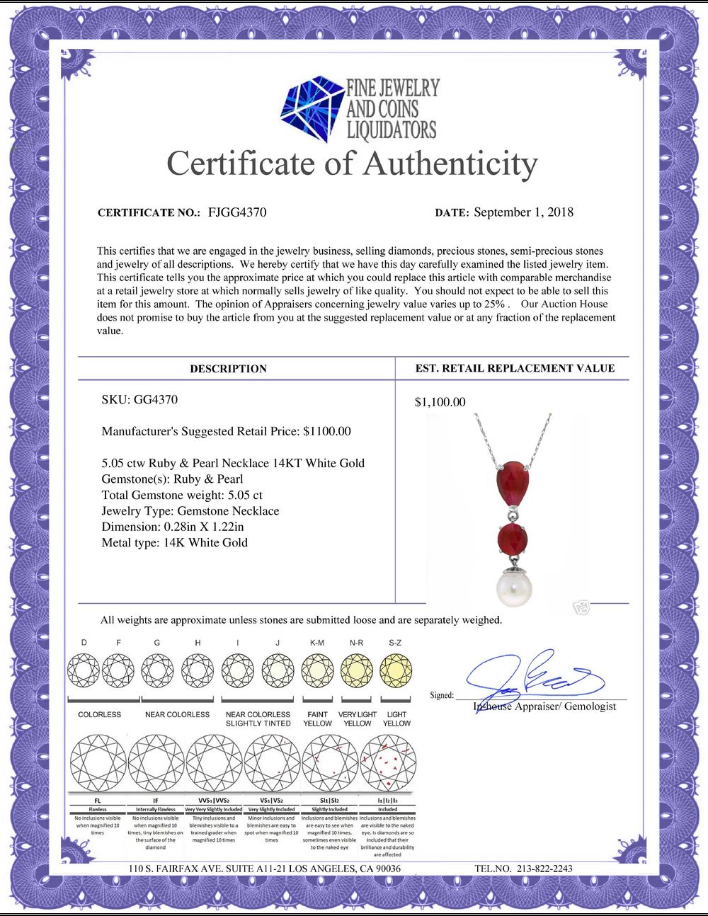 All Gia and EGL Diamonds are subject to availability due to consignors’ terms with us.