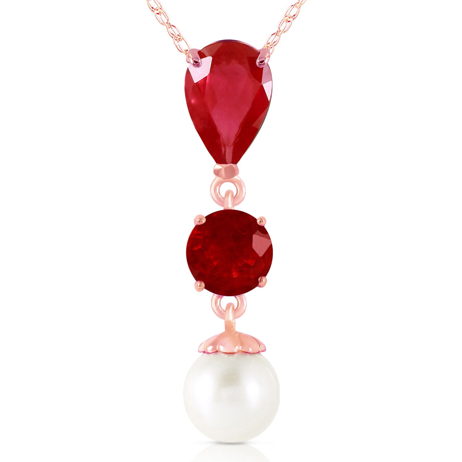 REF-33A8K ---- SKU:GG-4370 ---- Manufacturer's Suggested Retail Price: $1100.00 ---- Genuine 14K Rose Gold 5.05 ctw Ruby & Pearl Necklace