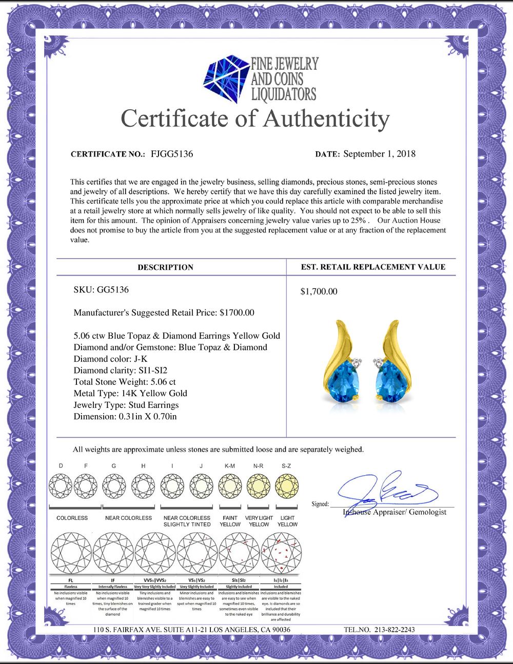 REF-54M2T - SKU: GG5136 ---- Genuine 5.06 ctw Blue Topaz & Diamond Earrings 14KT Rose Gold