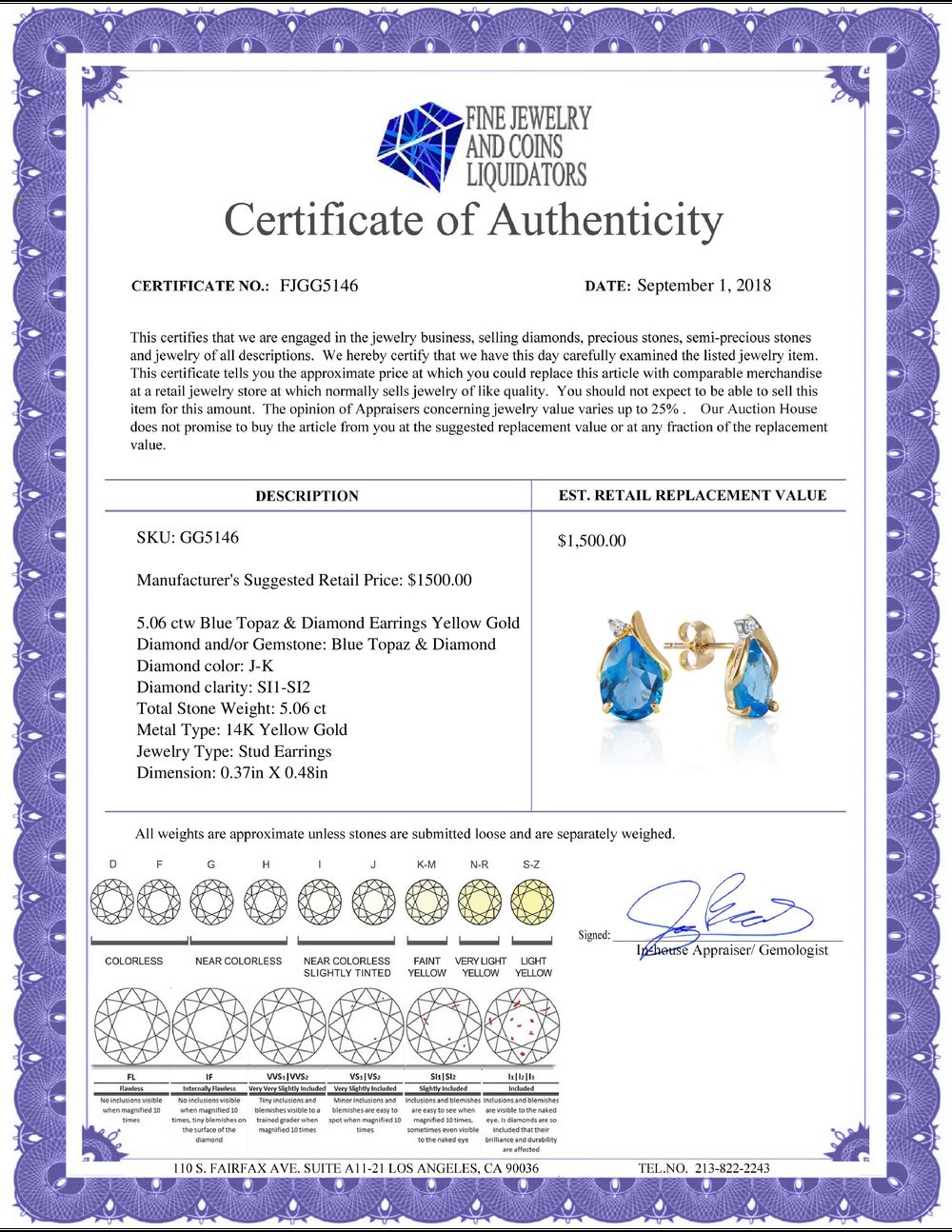 All Gia and EGL Diamonds are subject to availability due to consignors’ terms with us.