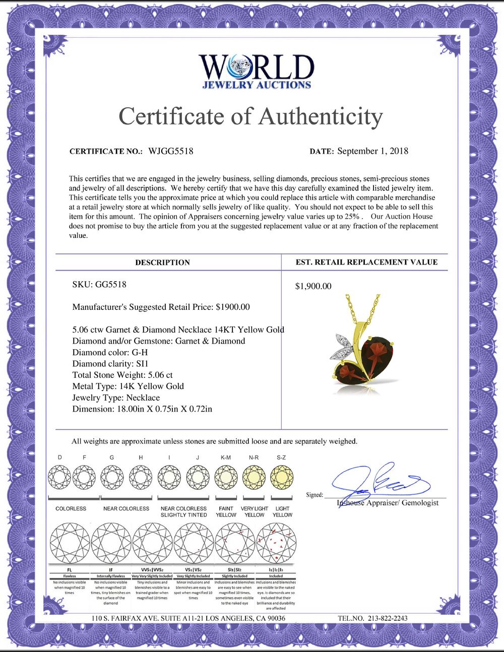 REF-61V8W - SKU: GG5518 ---- Genuine 5.06 ctw Garnet & Diamond Necklace 14KT Yellow Gold