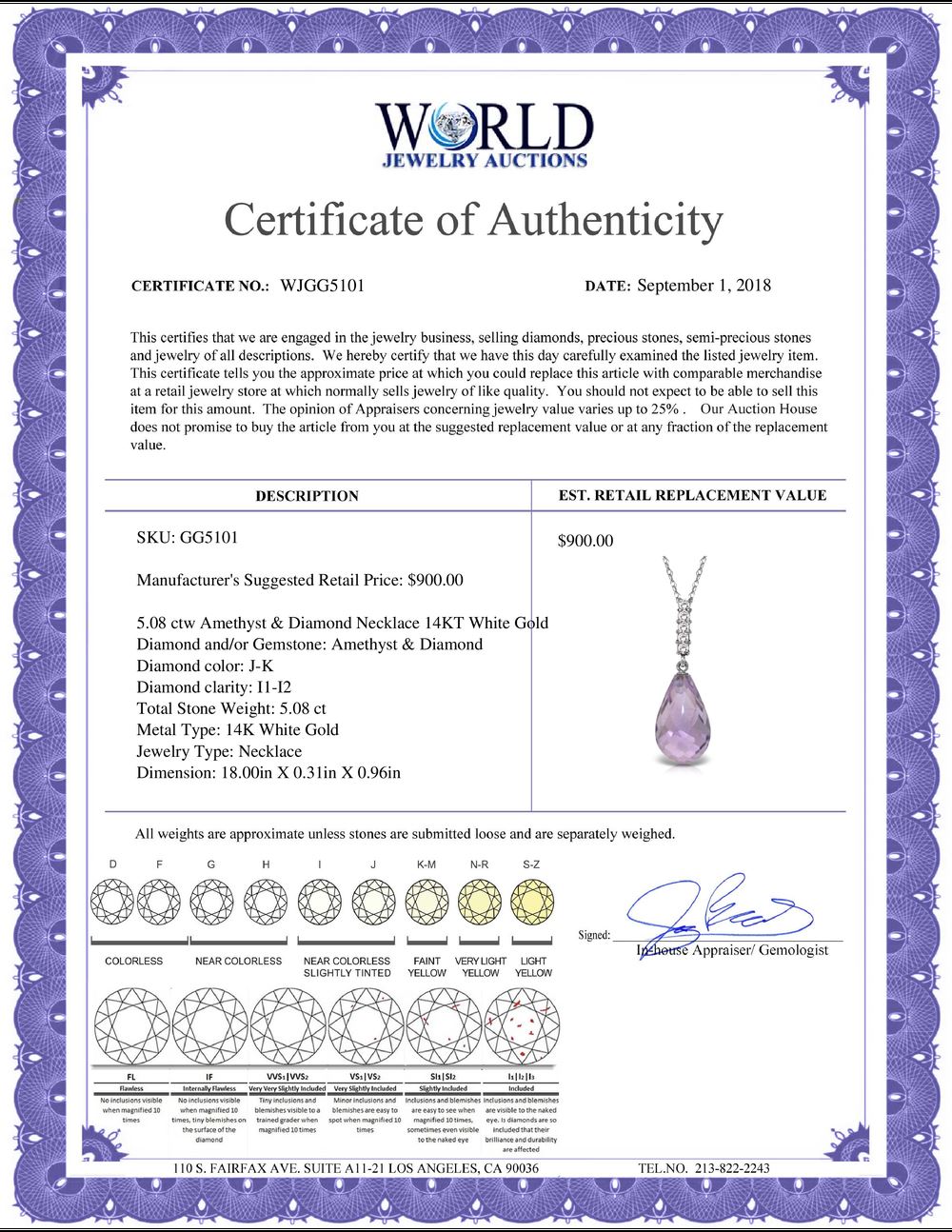 REF-29P2H - SKU: GG5101 ---- Genuine 5.08 ctw Amethyst & Diamond Necklace 14KT Rose Gold