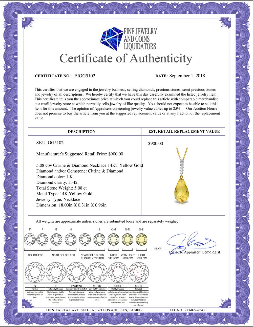 REF-29K2V - SKU: GG5102 ---- Genuine 5.08 ctw Citrine & Diamond Necklace 14KT Yellow Gold
