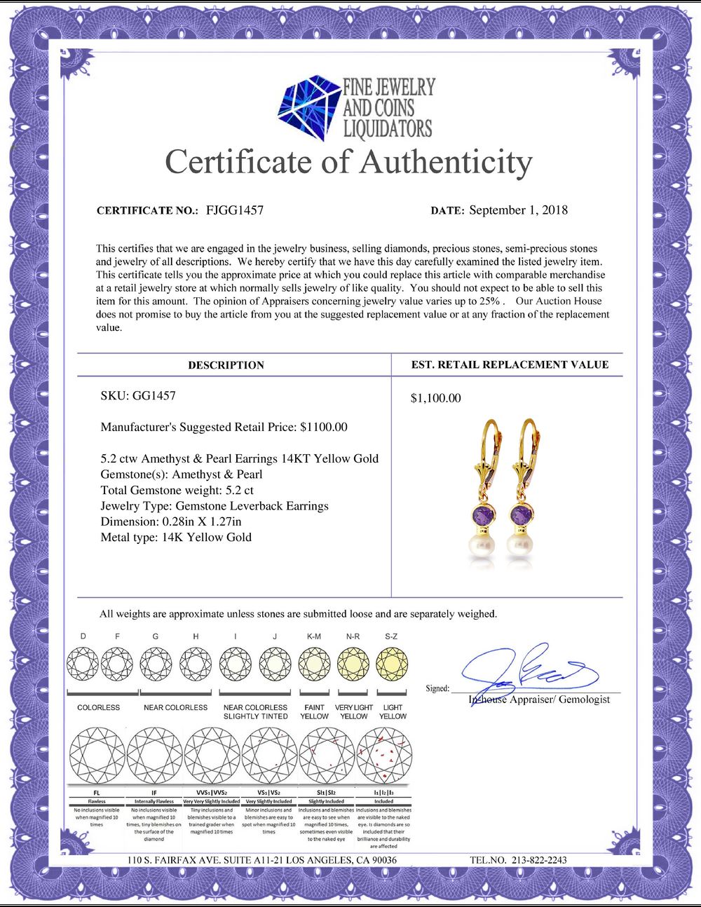 Genuine 14K Yellow Gold 5.2 ctw Amethyst & Pearl Earrings