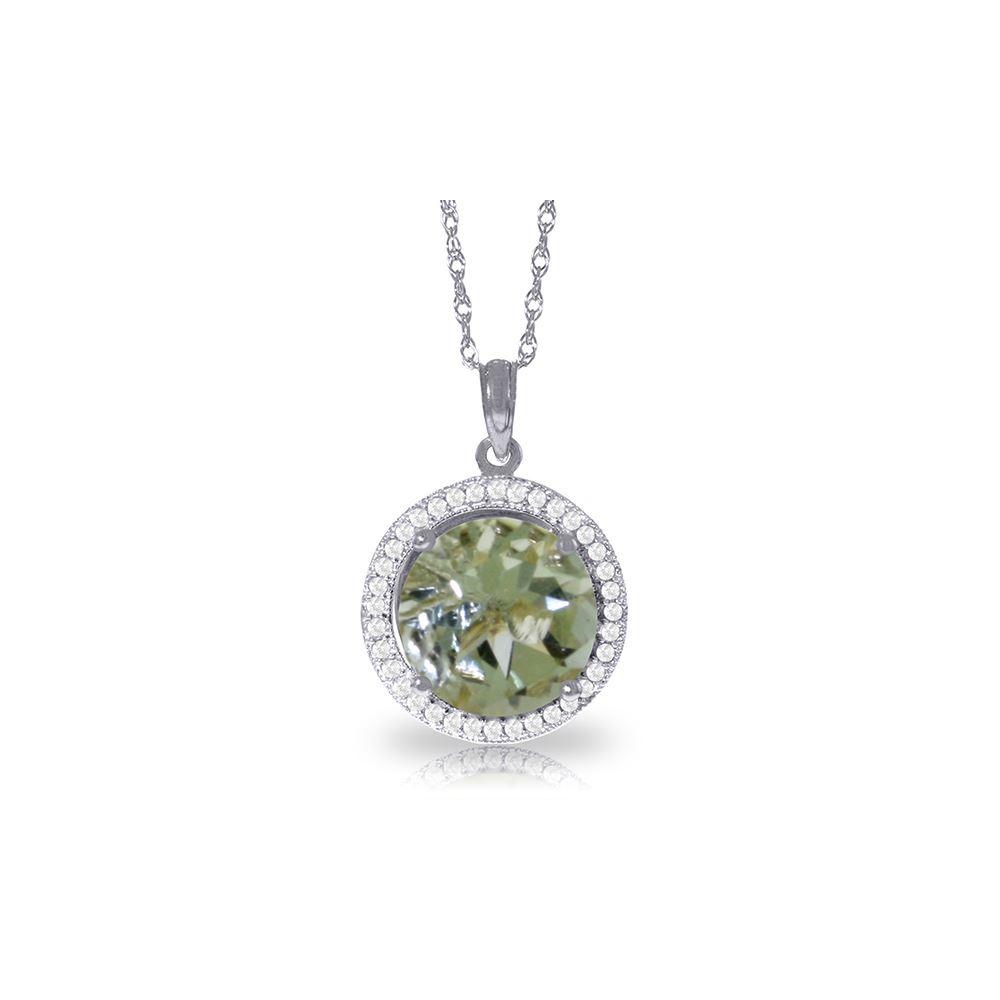 Genuine 14K White Gold 5.2 ctw Green Amethyst & Diamond Necklace