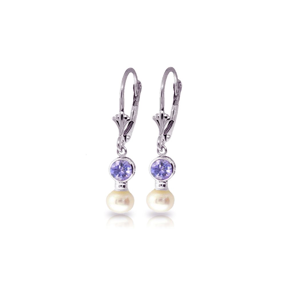 Genuine 14K White Gold 5.2 ctw Tanzanite & Pearl Earrings