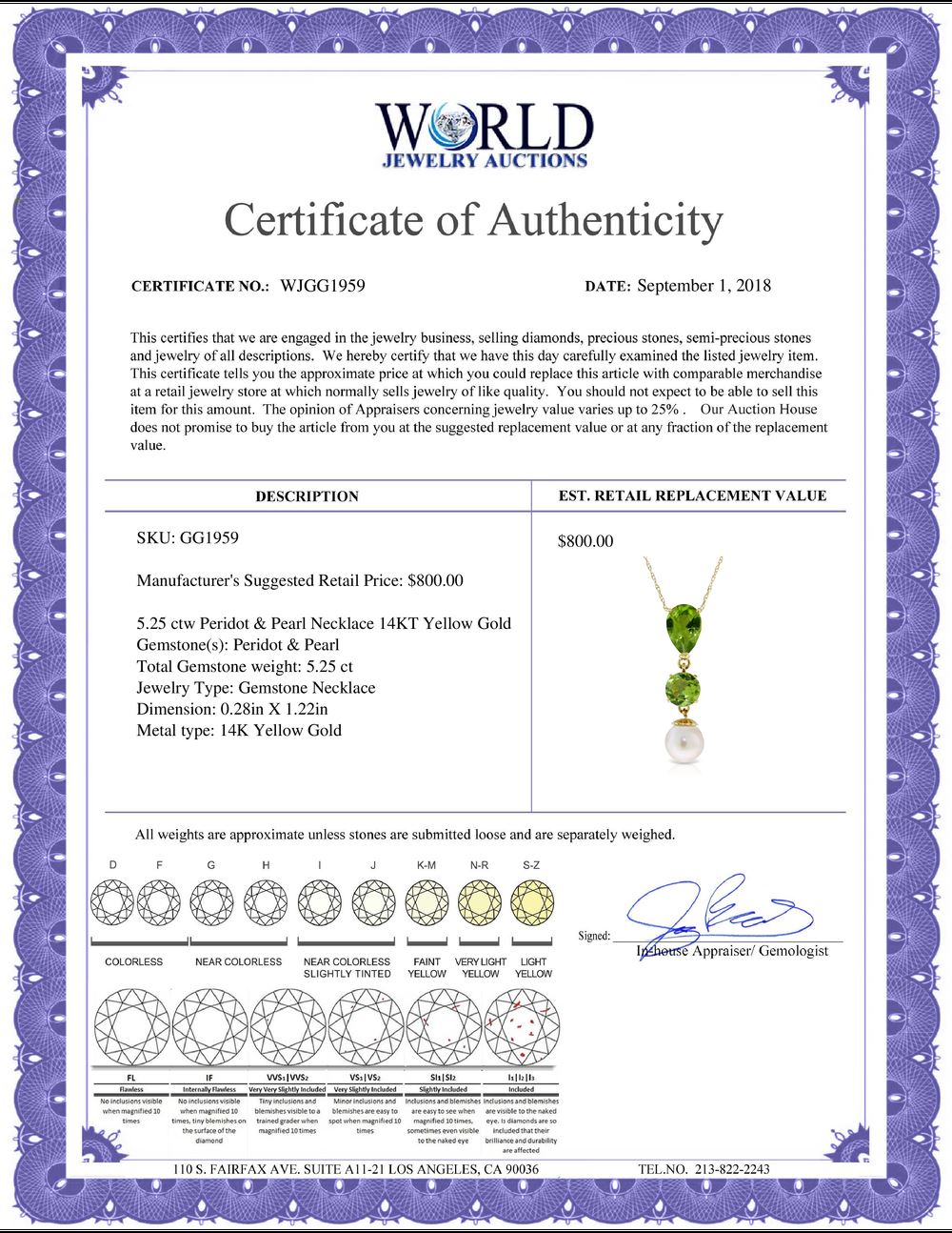 REF-25W9Y - SKU: GG1959 ---- Genuine 5.25 ctw Peridot & Pearl Necklace 14KT Yellow Gold