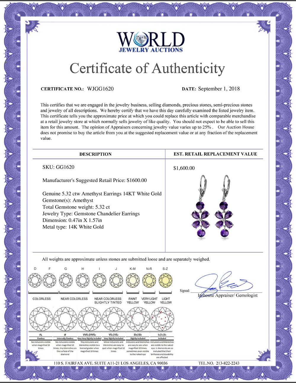 REF-50K3V - SKU: GG1620 ---- Genuine 5.32 ctw Amethyst Earrings 14KT White Gold