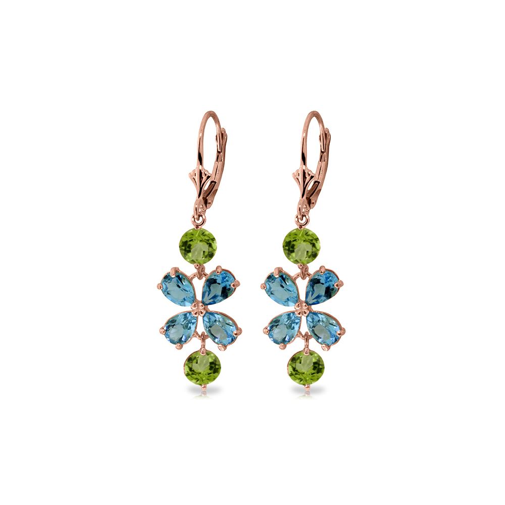 Genuine 14K Rose Gold 5.32 ctw Blue Topaz & Peridot Earrings