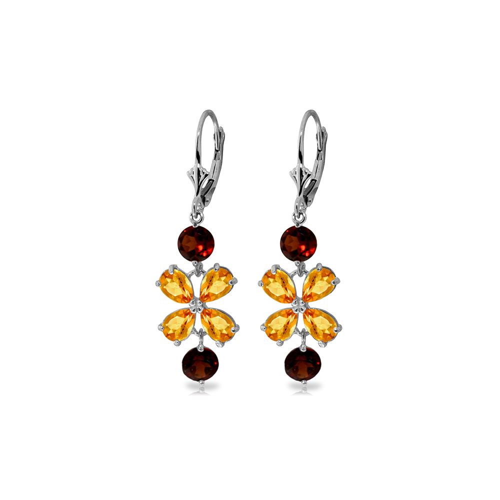 Genuine 14K White Gold 5.32 ctw Citrine & Garnet Earrings