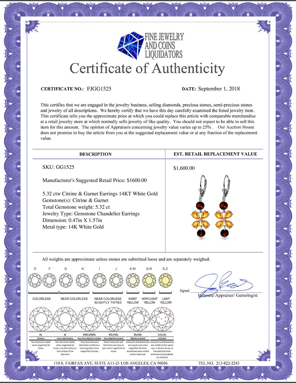 REF-50Y3F - SKU: GG1525 ---- Genuine 5.32 ctw Citrine & Garnet Earrings 14KT White Gold