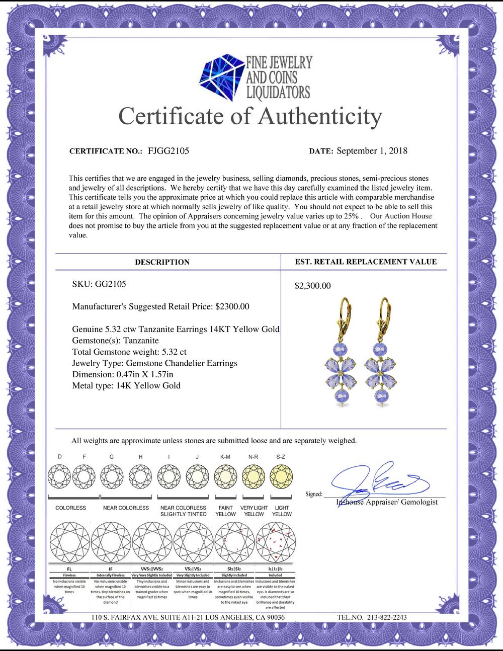 REF-75Y2F - SKU: GG2105 ---- Genuine 5.32 ctw Tanzanite Earrings 14KT Yellow Gold
